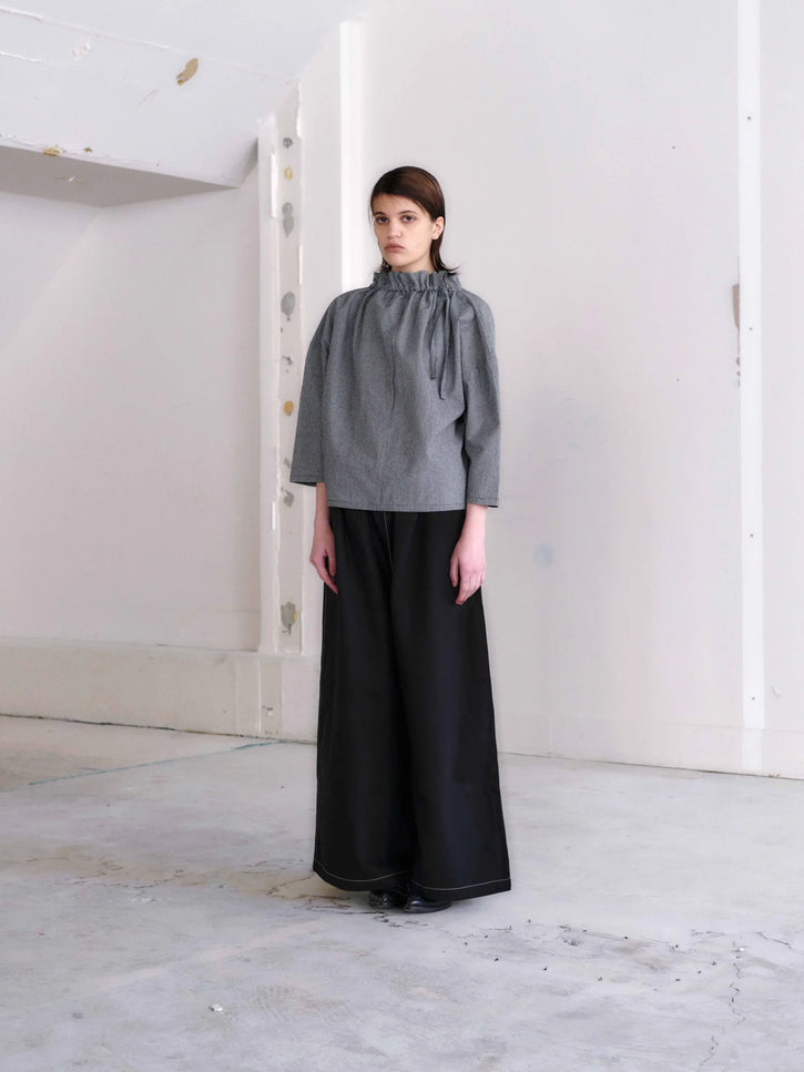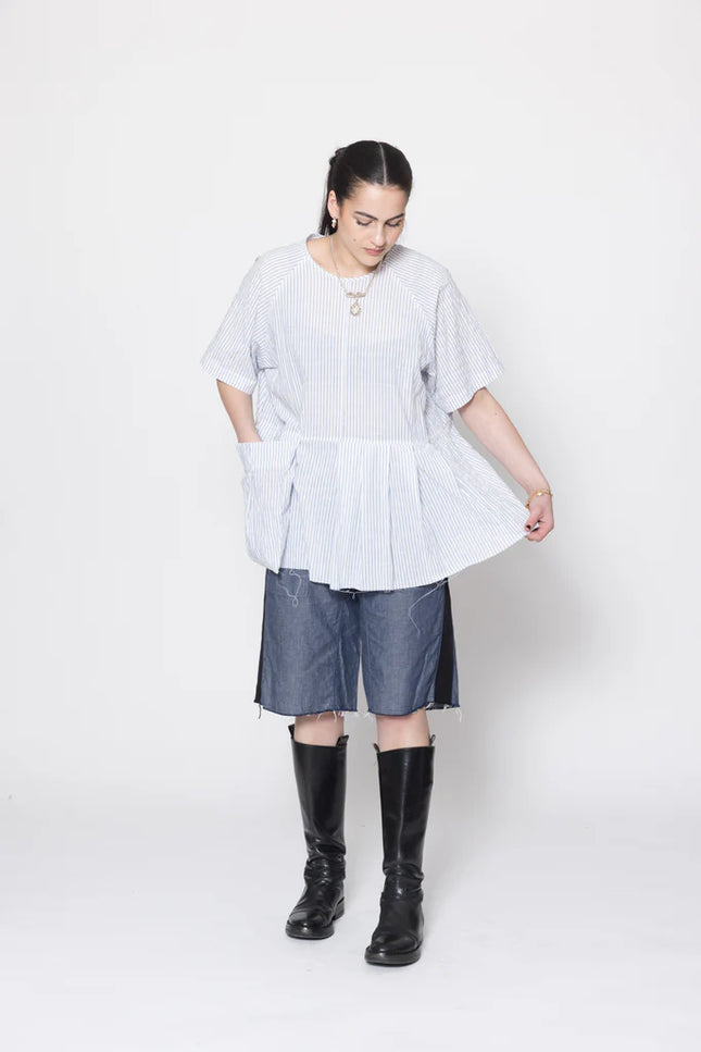 Marle Marle Short Sleeve Seam Shirt - Denim - Blanc