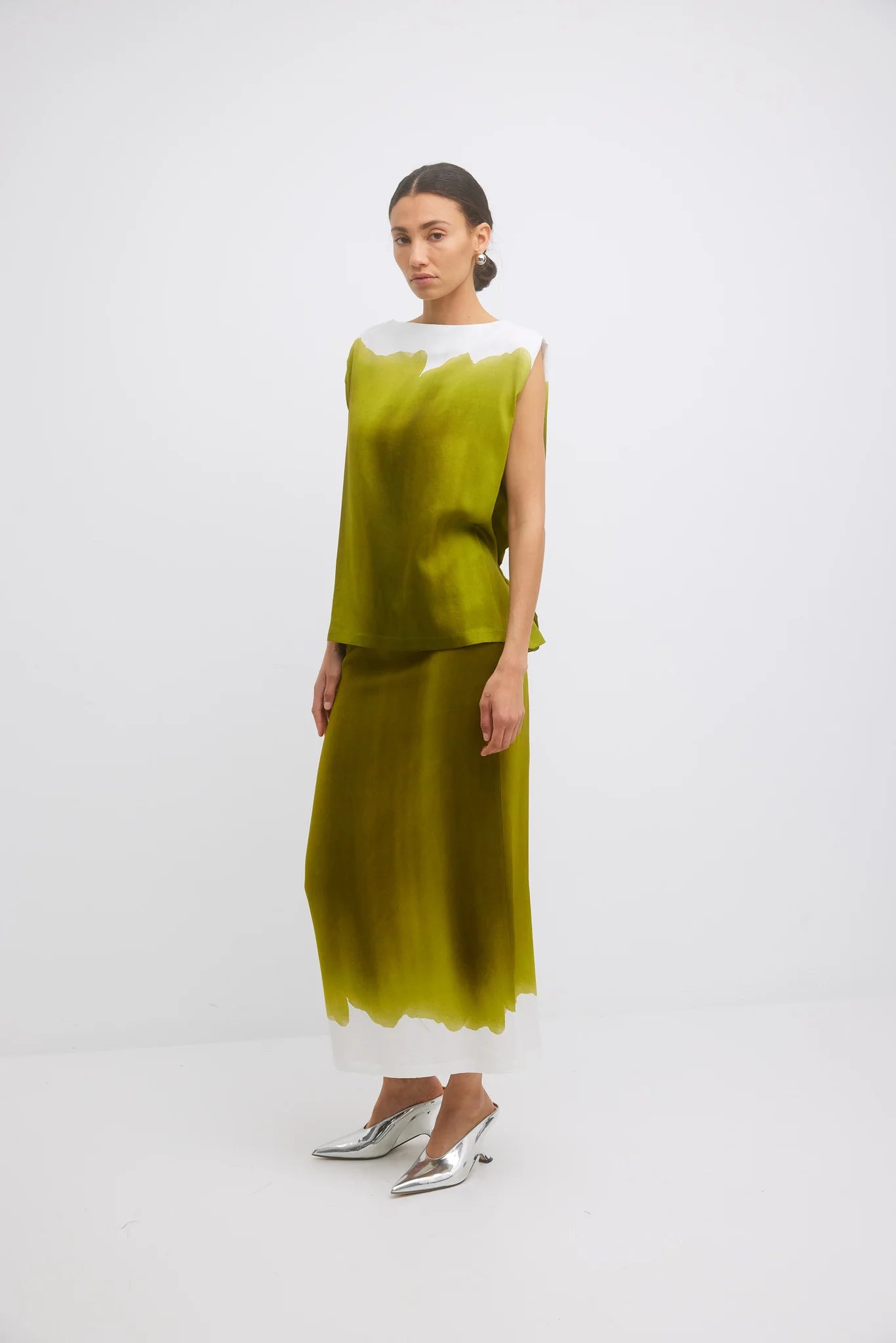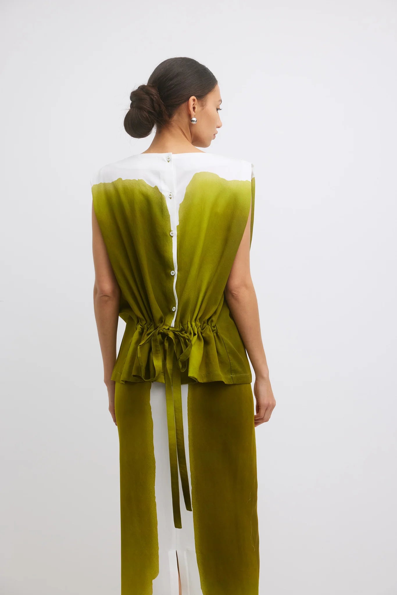 Introducing the Paz Top - a beautifully designed piece featuring a watermark print in heavy tencel fabric. Its square neckline, button back, and back waist ties provide both style and comfort, making it a versatile match with the Paz Skirt. Look unique and fashionable with this must-have top.