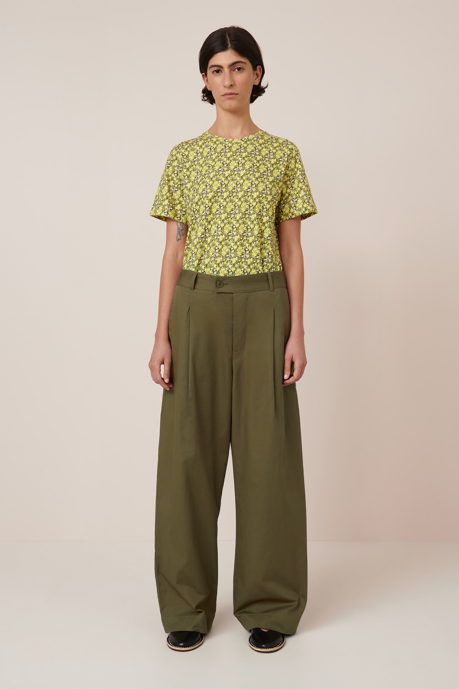 The Harmony Pant combines effortless style with a relaxed, wide-leg silhouette. Crafted from soft organic cotton twill, they feature a partial elastic waistband for added comfort. A single pleat enhances the fullness through the leg, while the nut button fly and overlapped waistband add a refined finish. Designed to sit mid-rise, the Harmony pant offers a relaxed fit that's perfect for everyday wear. All Fairtrade organic cotton. All plastic-free.