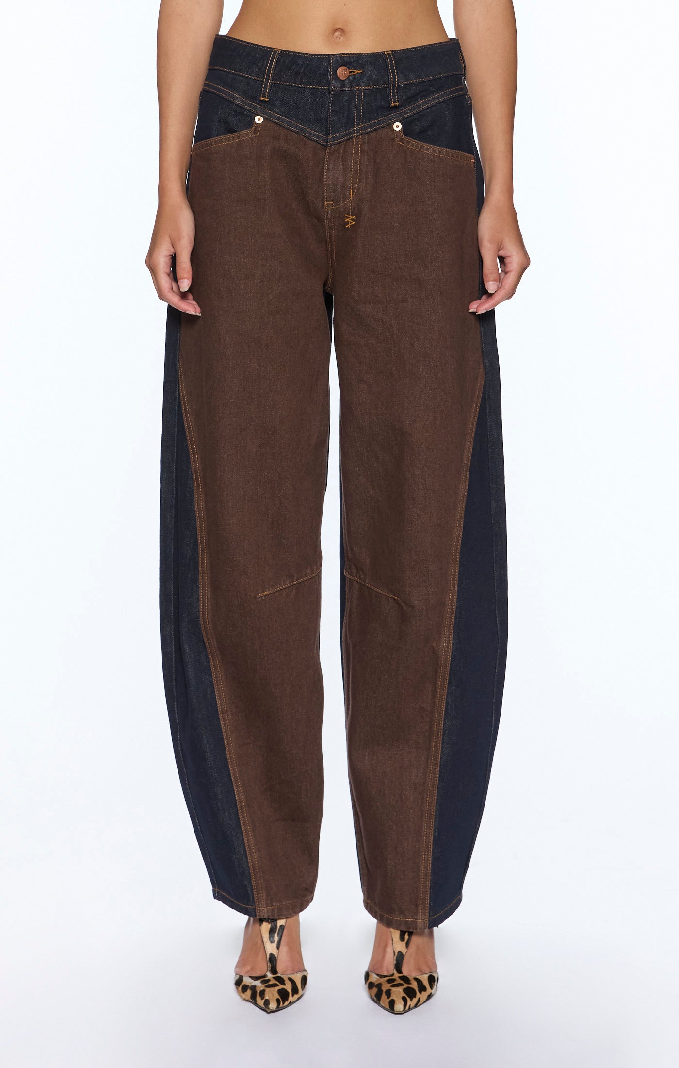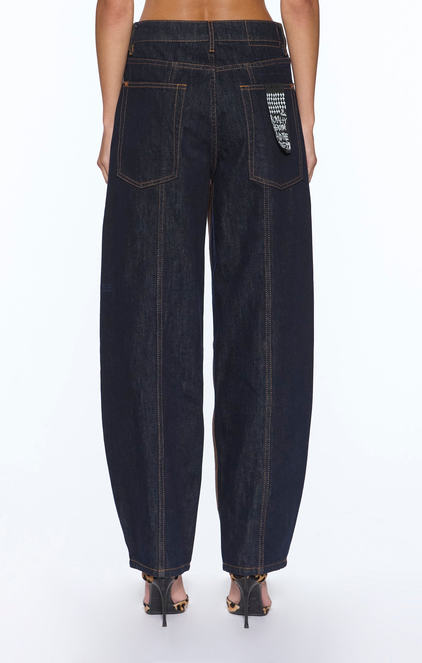 The Barrel Leg is a mid-rise jean, relaxed fit with disinctive barrel-shaped leg that tapers at ankle. Made from a premium rigid raw rinse denim spliced with brown overdyed denim. It features classic five-pocket styling, with Ksubi branded anti-brass hardware, T-box and 3x4 embroidery, removeable pocket tag attached to wearer's right back pocket. Designed to be a flattering and sculptural silhouette.