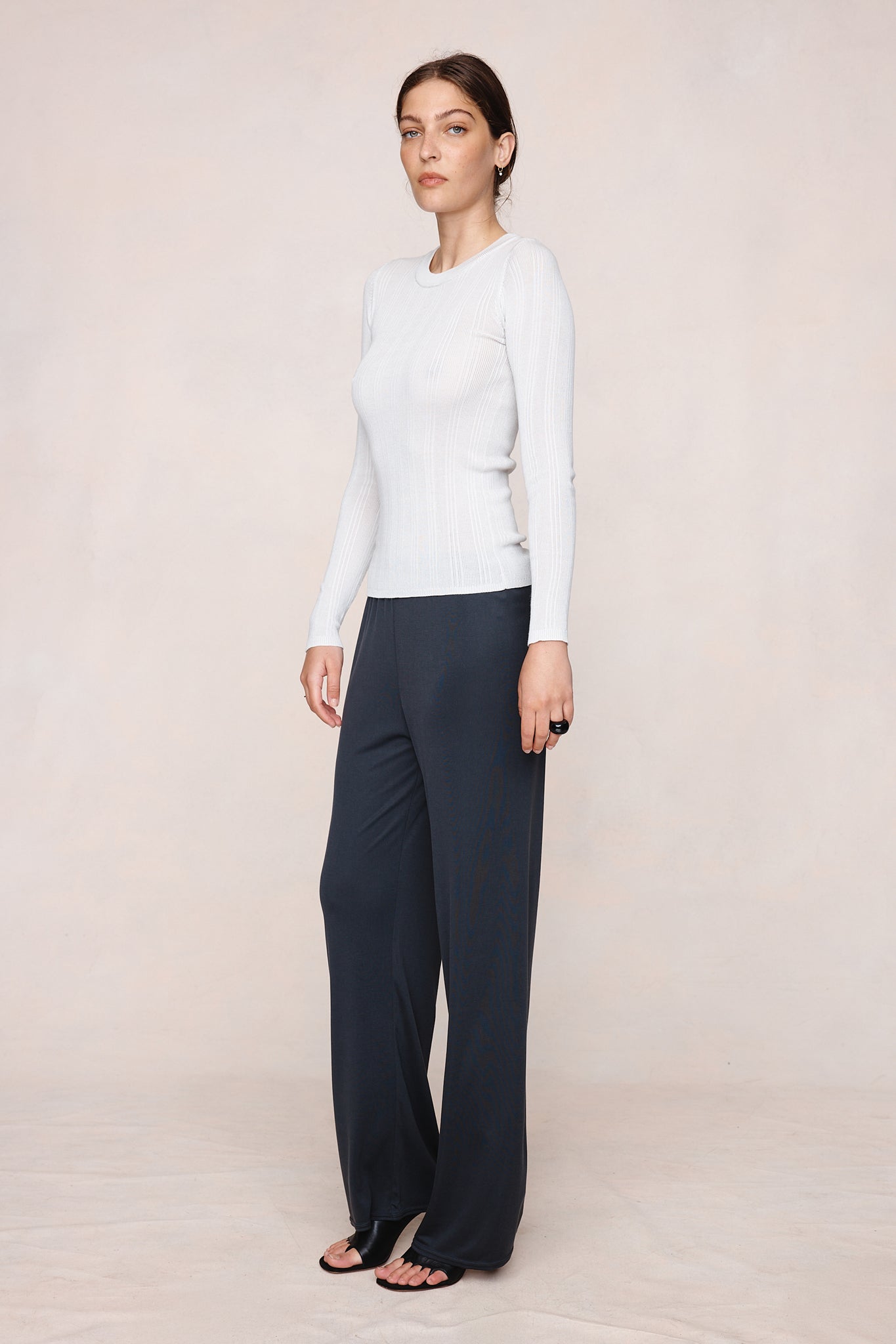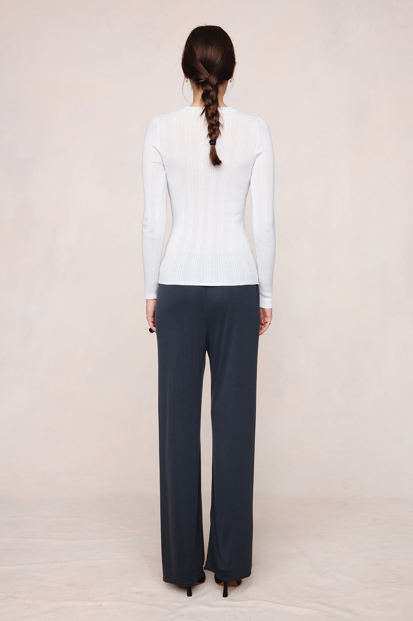 Long-sleeve top in a fine ribbed knit with soft stretch with a slim fit, crew neckline, and full-length sleeves.