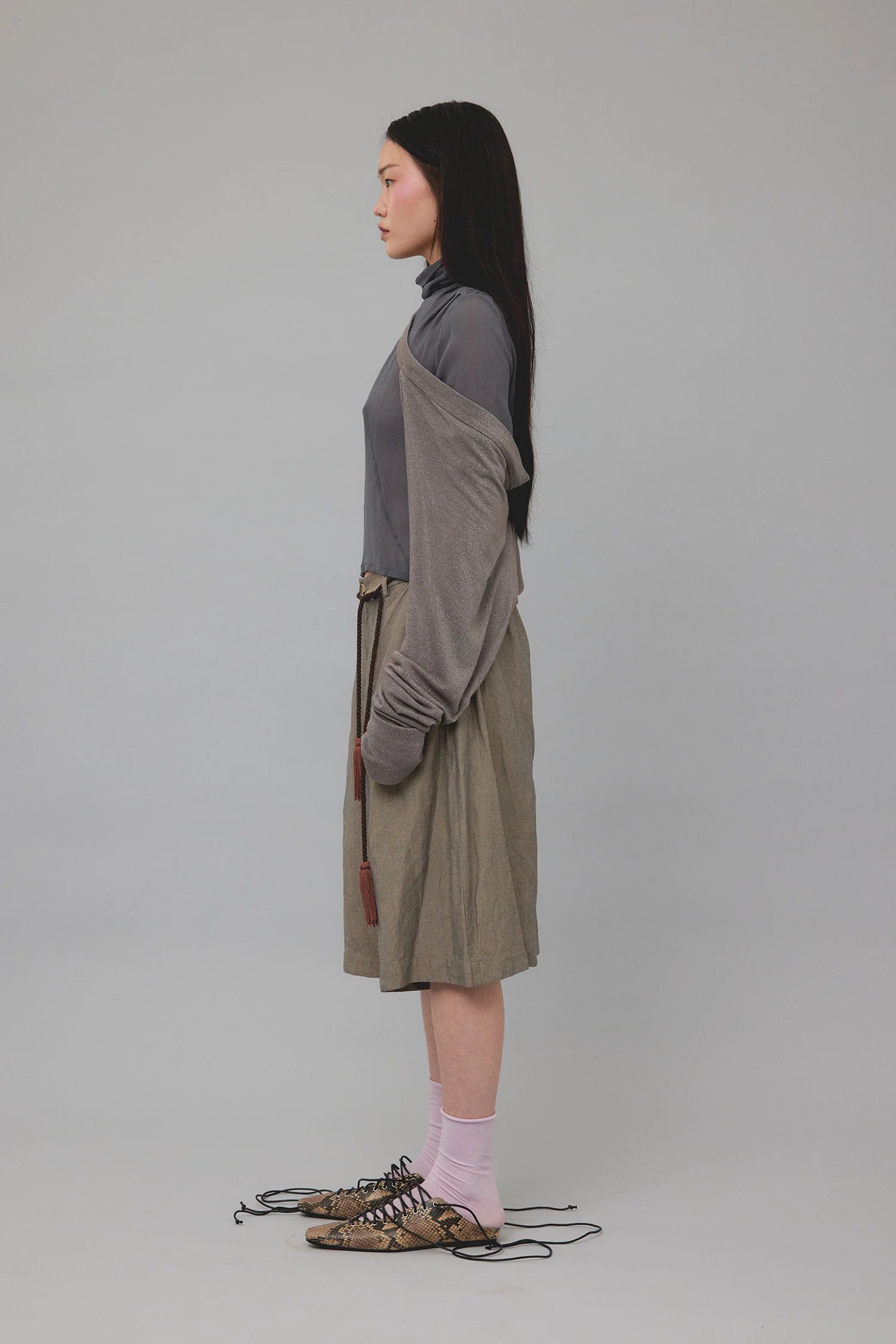 ● Drop crotched shorts in a soft washed linen/viscose blend